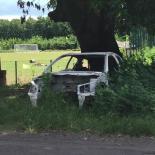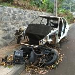 Épave de Peugeot 106 calcinée à Mamoudzou